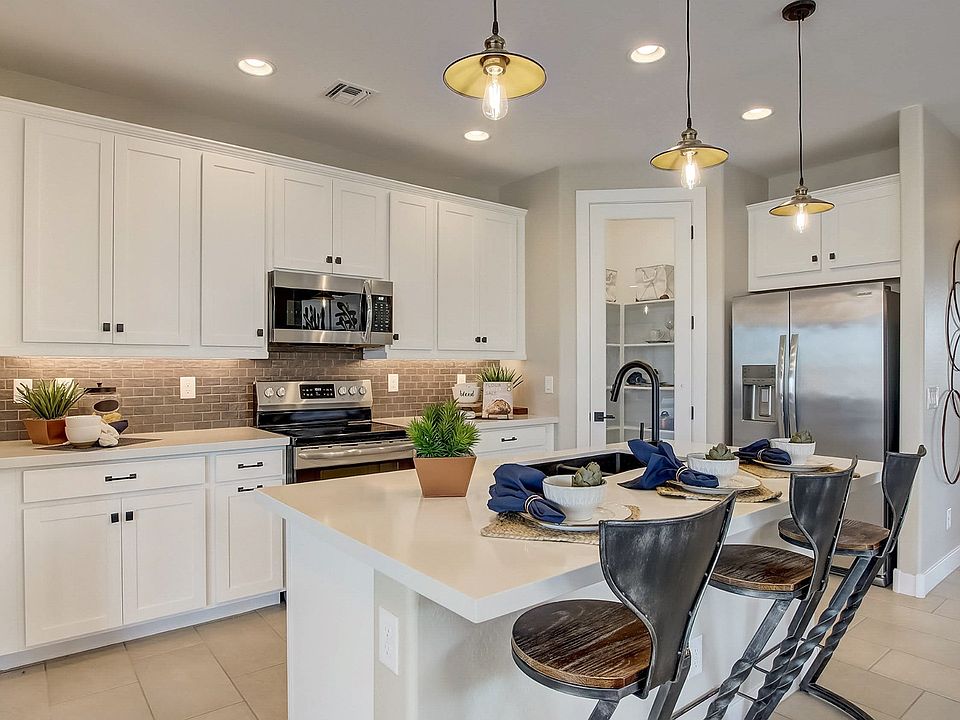 New homes in Buckeye, AZ await in the visionary community of Teravalis, offering state-of-the-art community amenities, close proximity to Floreo Community Center, and personalized home options. Meaning "Land of the Valley," Teravalis is a groundbreaking master-planned community inspired by the natural splendor of the Sonoran Desert. Nestled between the Belmont Mountain Range and the White Tank Mountains in a preserved wildlife corridor, this thoughtfully designed development blends environmental stewardship with cutting-edge innovation. As AZ home builders, Brightland Homes is proud to offer residents sustainable living in the desert with stunning architecture, flexible floor plans, and modern design elements built for comfort and style. Teravalis is centered around an unmatched lifestyle experience, anchored by the Floreo Community Center that welcomes you into the neighborhood. This dynamic hub features a fully equipped fitness center, a resort-style pool, a dedicated fitness pool, and a tranquil spa. The community also boasts multiple parks, dog parks, and expansive sport fields and courts, creating ideal spaces for connection and recreation. Walking trails weave through the community, while hiking and biking trails in the nearby mountain ranges encourage residents to immerse themselves in the natural surroundings. Sustainability is a guiding principle at Teravalis, which proudly holds the distinction of being an Energy Star community with conservation efforts and WaterSense sustainability in homes. These initiatives are helping to shape a healthier environment and a more efficient lifestyle. If you're searching for new home builders in Phoenix, look no further than DRB Homes. Our new homes in Teravalis provide a seamless blend of nature and community in one of the region's most exciting new destinations.