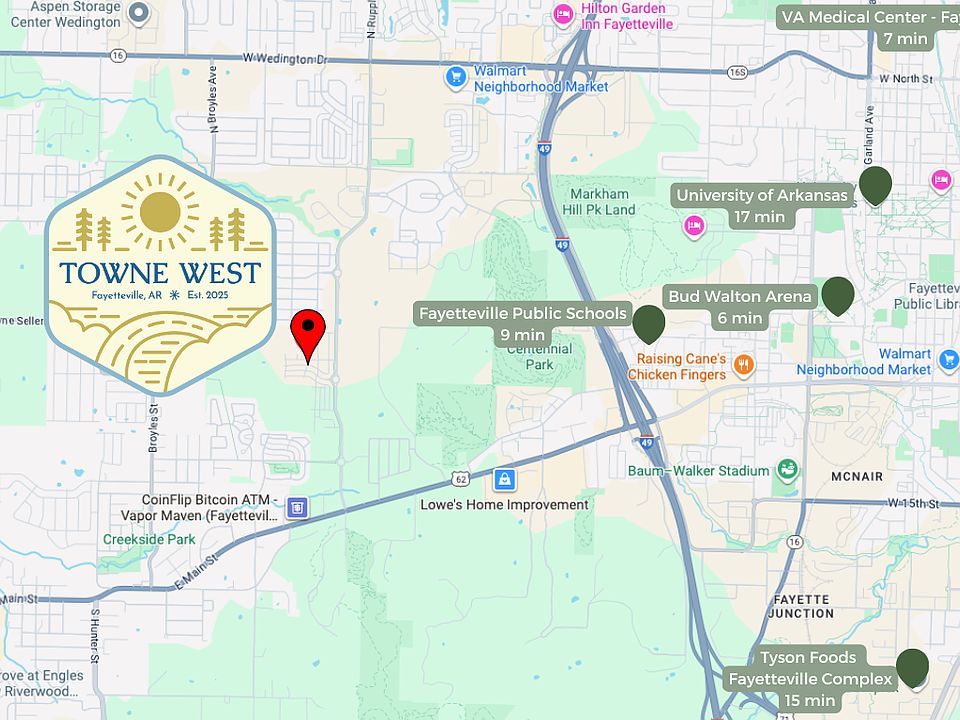 New Construction Homes for Sale in Fayetteville, AR - Discover Towne West by Schuber Mitchell Homes Looking for new homes in Fayetteville, Arkansas, with top-rated schools and an unbeatable location? Welcome to Towne West, a premier new home community by Schuber Mitchell Homes, offering spacious homes with open-concept floor plans and modern features. Ideally located off Rupple Road, Towne West provides convenient access to Wedington Drive, Interstate 49 (I-49), Farmington, and the University of Arkansas. Families will love being directly across the street from John L Colbert Middle School, making school drop-offs a breeze. Explore new construction homes in Fayetteville and say hello to your dream home at Towne West - one of the most sought-after neighborhoods in the region.