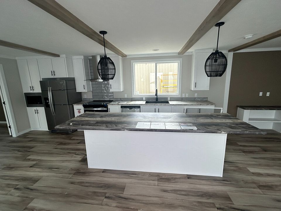 The Fleetwood Elite Series / Twin Peaks 16763E built by Cavco Lafayette features 1,178 sq. ft. of modern comfort with 3 bedrooms and 2 bathrooms. The open layout connects the spacious kitchen, dining area, and living room for easy living and entertaining. The primary suite offers a walk-in closet and private bath, while the additional rooms provide flexibility for family or guests. The 16763E delivers a stylish balance of practicality and comfort for everyday living.