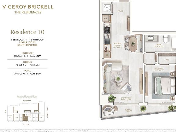 Floor plan: Residence 10, 1BD, 310, Viceroy Brickell The Residences Miami, Miami, FL 33137