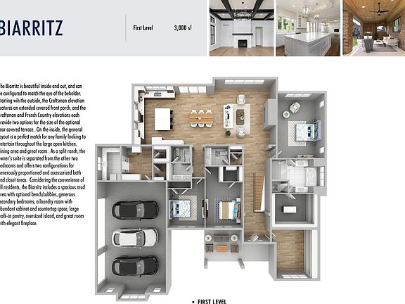 - Attached garage spaces: 3