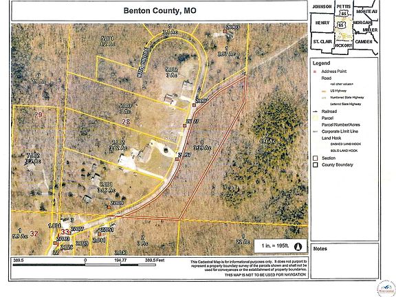 Outstanding 3.39 Timbered Acres that borders Corp Ground in the Truman Lake Area. Winter Lakeview! Electricity and 16 x 16 Concrete Pad on property! Perfect Building Site.