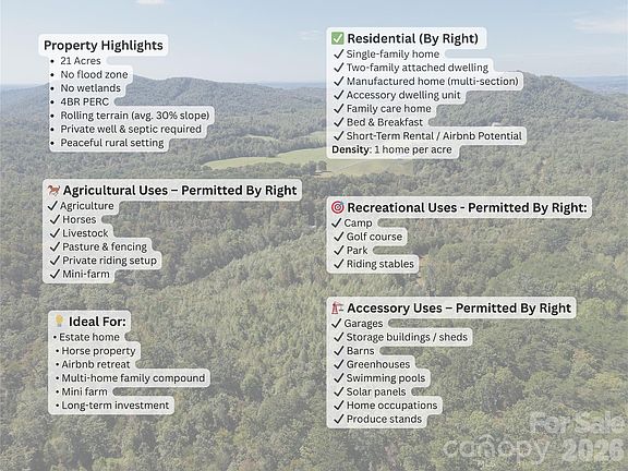 21 ACRES IN NC FOOTHILLS – NO HOA – 4BR PERC – R3 ZONING