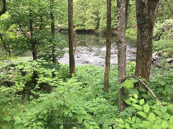 Approximately 4 acres with approximately 400 feet frontage on Deer River. Rugged, forested property enjoys good privacy and good access from municipal road over private roadway. Property situated just below conservation authority dam and includes legal access to the river above the dam as well. Canoe/Kayak downstream for miles or boat up river into Wollaston Lake. Best of both worlds.