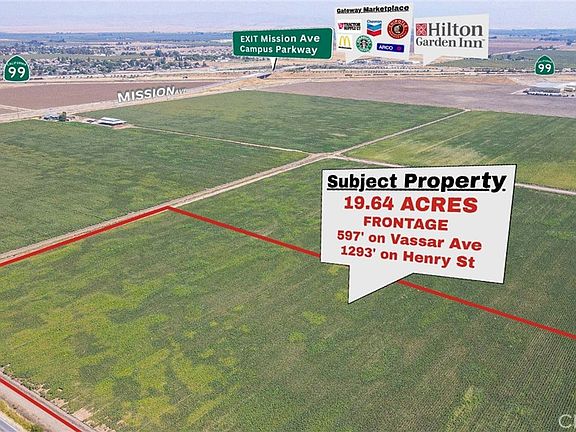 Location, Location! This 19.64-acre parcel is part of a 161+/- acre family ranch in the path of development which could be purchased together. Strategically located w/in close proximity to Hwy 99 and the newly developed Campus Expressway overpass, a direct route to UC Merced. The property is also located within the "Merced Vision 2030" SUDP Boundary, making it well positioned for future growth demand. Future possibilities could include commercial, industrial or residential development for this underserved market area. Also, in close proximity is the Gateway Marketplace, the newest regional commercial development project currently underway. The Gateway Marketplace includes major retailers such as Tractor Supply, Starbucks, McDonald’s, Arco, Chevron and a Hilton Hotel/Convention Center. The city of Merced just broke ground on a 40-acre sports complex just down Mission Ave, dubbed Community Park 42, a REGIONAL sports complex, allowing for large scale tournaments, concerts, and events. Land running along Mission Ave is quickly becoming the object of attention as residential communities and city infrastructure is being brought further south to accommodate the city's massive growth and grossly underserved commercial/industrial/residential needs. This parcel is also adjacent to Yosemite Wholesale, a 220, 000SF distribution warehouse. As the city of Merced determines its need for commercial, industrial and residential land necessary to accommodate its quickly growing population and a growing UC Merced, this could be the best timing to acquire development land.