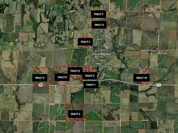 After five generations of family ownership, this expansive 812+/- acre property situated surrounding Mound Valley, KS, is being made available for the first time. Divided into 10 tracts, this land offers a wide variety of options for buyers, whether you're looking for tillable farmland, pastureland for grazing, or a potential home site. With tracts ranging from 7.78 +/- acres to 160+/- acres, there's something for everyone at this auction. The property includes: Tillable Land: Fertile, productive acreage ideal for farming or crop production. The current non-tillable tracts also have potential to be turned to tillable! Pastureland: Open spaces perfect for livestock or recreational use. Recreational Land: A variety of landscapes offering room for hunting or other outdoor activities. Tract 1 - 7.78± Acres Don't let the size fool you-this small but beautiful tract along Hwy 160 and Gray Rd packs in plenty of character. The west end features dense, mature timber offering shade and seclusion, while the east side opens up to a scenic hay meadow. A unique spot with lots of potential! Tract 2 - 59.4± Acres Located just north of Hwy 160 and east of Gray Rd, this pasture tract includes two ponds and wide open spaces. The northwest corner offers a ready-made area for hay storage or a potential homesite. With easy access and open space, it's ideal for livestock, hobby farming, or building your dream home. Tract 3 - 36.12± Acres Situated north of Mound Valley on 15000 Rd, this tract is currently a productive hay meadow but offers flexibility for future tillable use. Mature timber runs through the center, creating excellent cover for wildlife and great recreational potential. A perfect blend of agriculture and outdoor enjoyment. Tract 4 - 160± Acres A true gem in the countryside-this tillable tract lies south of Mound Valley along Gray Rd and 13000 Rd. Pumpkin Creek winds through the property, dividing it into three fields with mature timber lining the banks. The mix of quality cropland, timber, and water provides strong farming potential and recreational oppurtunity. Tract 5 - 147.6± Acres Located along Hwy 160 and Ford Rd just west of Mound Valley, this highly desirable tract is nearly all tillable and well-positioned for continued crop production. Whether you're expanding your operation or seeking a solid land investment, this one checks all the boxes. Tract 6 - ~60± Acres (Pending Survey) This productive tillable tract lies north of Mound Valley at the corner of 13th St and Gove Rd. It's the southern section of a larger parcel (with Tract 7) and will be surveyed to determine boundary. Great soil quality and access make it a solid addition to any farming portfolio. Tract 7 - ~80± Acres (Pending Survey) The northern portion of a larger parcel, this fenced and cross-fenced pasture features two ponds-one on each side of the dividing fence. Ideal for rotational grazing or livestock operations, this tract combines functionality and natural beauty. Survey to be completed with Tract 6 to determine boundary. Tract 8 - 90.32± Acres (14038 Gray Rd) This diverse tract offers fenced pasture, a pond, cross fencing, and several outbuildings for storage. The old farmhouse has not been inhabited for many years but remains on site. Utilities are available, making this an excellent site for a new home, ranch setup, or weekend retreat. Tract 9 - 85.35± Acres With Hwy 160 access, cross fencing, and a pond, this tract is currently being used as pasture but has strong potential to be converted to tillable acreage. The land is well-suited for multiple uses-ranching, farming, or recreation-all in a great location. Tract 10 - 75.57± Acres Located east of Mound Valley on 14500 Rd, this versatile tract includes fenced pasture, a hay field in the southeast corner with Hwy 160 access, mature timber, a small creek, and a pond. Surrounded by tillable land, it's a prime candidate for hunting, grazing, or development into a hobby farm or rec property.