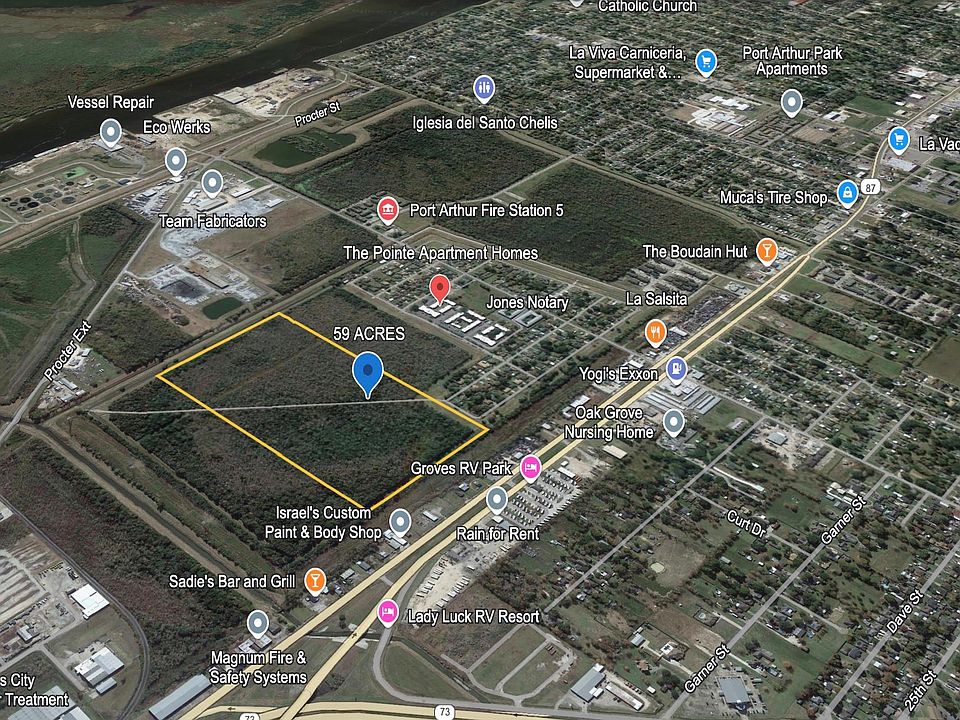 59.23 Acre development opportunity in Port Arthur, TX. Currently zoned light residential but is situated among industrial, multifamily, and residential properties making potential rezoning strongly possible. Location offers development flexibility ideal for industrial expansion, logistics, warehousing, or mixed-use projects. It's proximity to major highways and regional routes ensures excellent connectivity. Seller is open to dividing the property and there may be additional land available; please inquire for more details if interested.