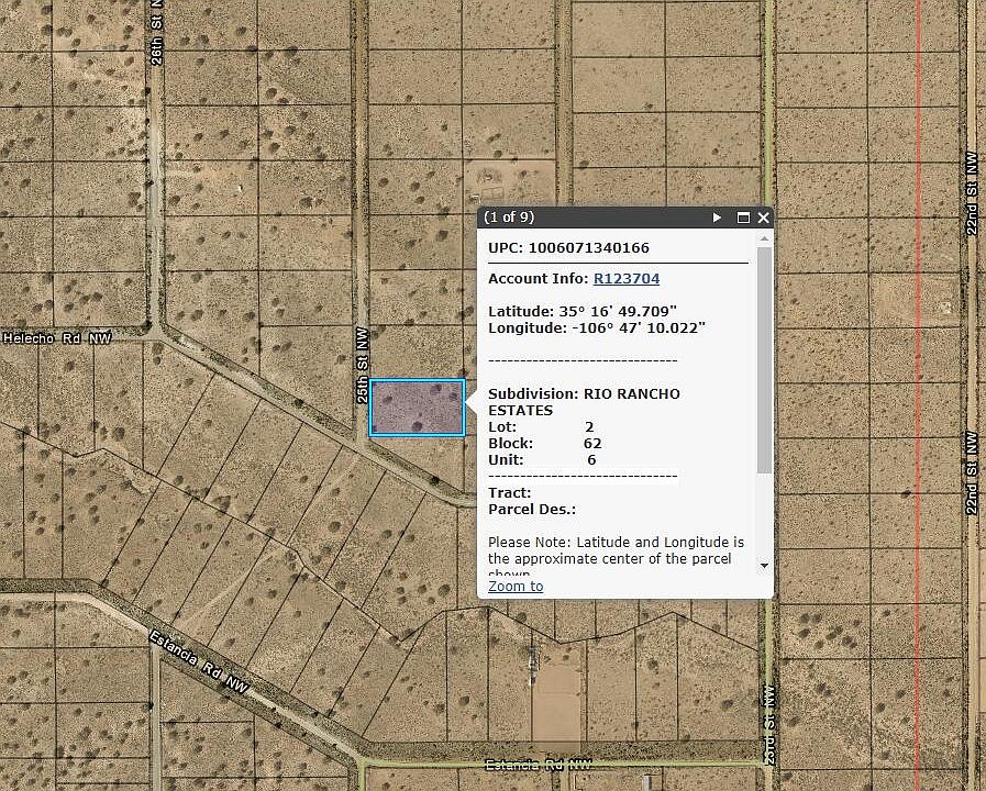 This full acre of County Land will amaze you with the majestic sunsets on the Sandia Mountains. Less than 1/2 mile from the Rio Rancho Bulk fill water station. Development is moving in this direction. Invest now for the future or plan your current move.