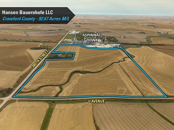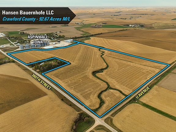 Crawford County, Iowa Farmland Auction - Mark your calendars for Thursday, December 4th, 2025! Representing Hansen Bauernhofe LLC in the sale of their Crawford County farm located just north of Aspinwall, Iowa, and west of Manning, Iowa. The property consists of 92.67 acres m/l and is situated in Section 15 of Iowa Township, Crawford County, Iowa.