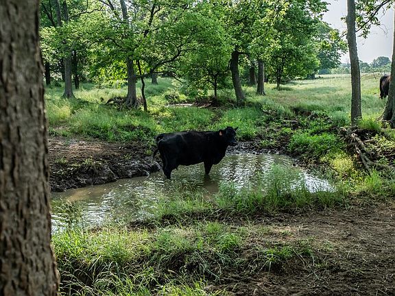 This property features many of foundational items to a great grazing operation. The perimeter fencing is in place an in good condition. The interior of the tract contains multiple cross fences. These cross fences need a bit of repair in order to implement rotational grazing. Big stretches of the cross fences are in good condition however there are sections of each that need to be repaired. There are two ponds and they would serve separate pastures if the cross fences were repaired. Both ponds are showing the stress of the drought. There is a creek that runs through the farm to supplement the ponds as a water source for livestock. Currently the creek is not running but it is holding water in several pot holes. This appears to currently be the favorite source of water for the cattle. There is a catch pen located in the Southwest corner of the property. In addition to the ability to separate this property into two pastures with the cross fencing is the ability to lock them out of a pasture in the Northwest corner. At this time the cattle are free to roam the entire parcel. The grass looks good and there maybe potential to cut parts of the pasture for hay. There is a tenant in place with a pasture lease.