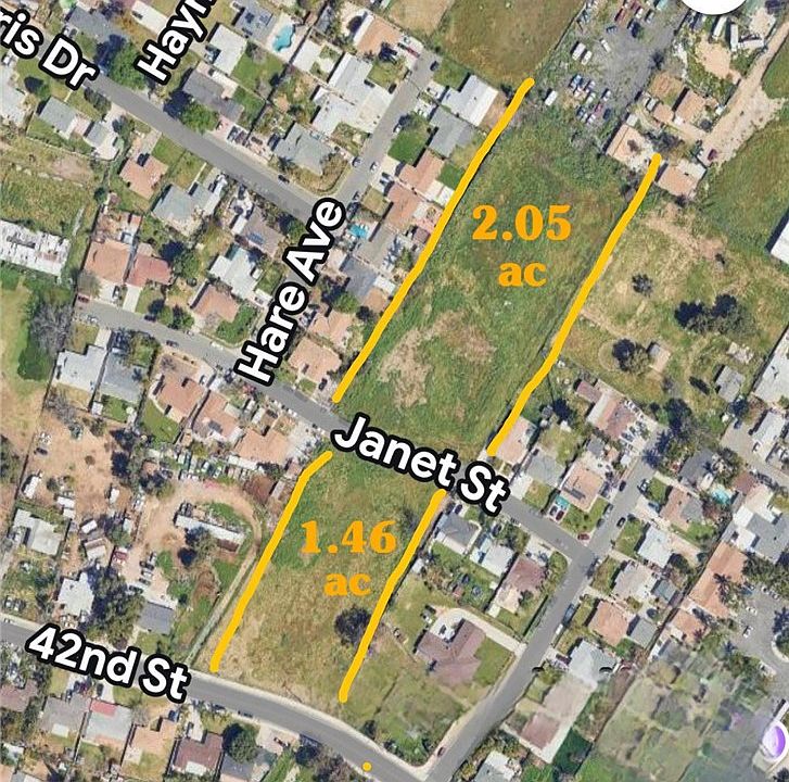 This 3.51 acre property offers many possibilities for a profitable investment development. This vacant land has freeway accessibility and is conveniently located near schools and shops. Best of all it is only 3 miles from the Riverside Historic downtown District. The land is separated by a city road, Janet St. This undeveloped land comes with 2 parcel numbers and 2 lot numbers totaling 3.51 acres. The Current owner purchased the property in one deed, therefore one legal description. The lot with APN # 182-242-009 is off and north of Janet St. It encompasses 89,298 sq ft. The other lot with APN# 182-24406 is off 42nd St., on the north side. Its grounds extend to 63,598 sq. ft. Water, gas, and sewer are available on the street. APN 182-24406, off 42nd St has sidewalks and two power line posts. City of Jurupa may permit 2-5 subdivisions per acre with minimum lot size of 7,200 sq. ft. min. frontage 60 ft. The min. frontage requirement is much less if in a cul-de-sac. Seller will not provide a tract or site map. Please exercise due diligence for vacant land to ensure the land is suitable for your intended purpose. The City of Jurupa various departments and divisions offer on-line, over the phone and over the counter information.