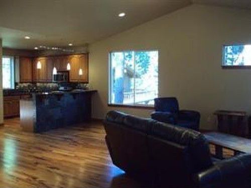 Brand new home with stunning finishes. This 4 bed 2.5 bath home has a level entry, solid custom built cherry cabinetry throughout, slab granite counters in kitchen with slate backsplash, stainless appliances, soft-stop self closing kitchen drawers, undercabinet lights, recessed lights with dimmers throughout the home, tigerwood floors, gas hook-up for grill on back deck, fireplace, vaulted ceilings, wired for a flat screen TV above fireplace, phone & TV wired to bedrooms and huge family...