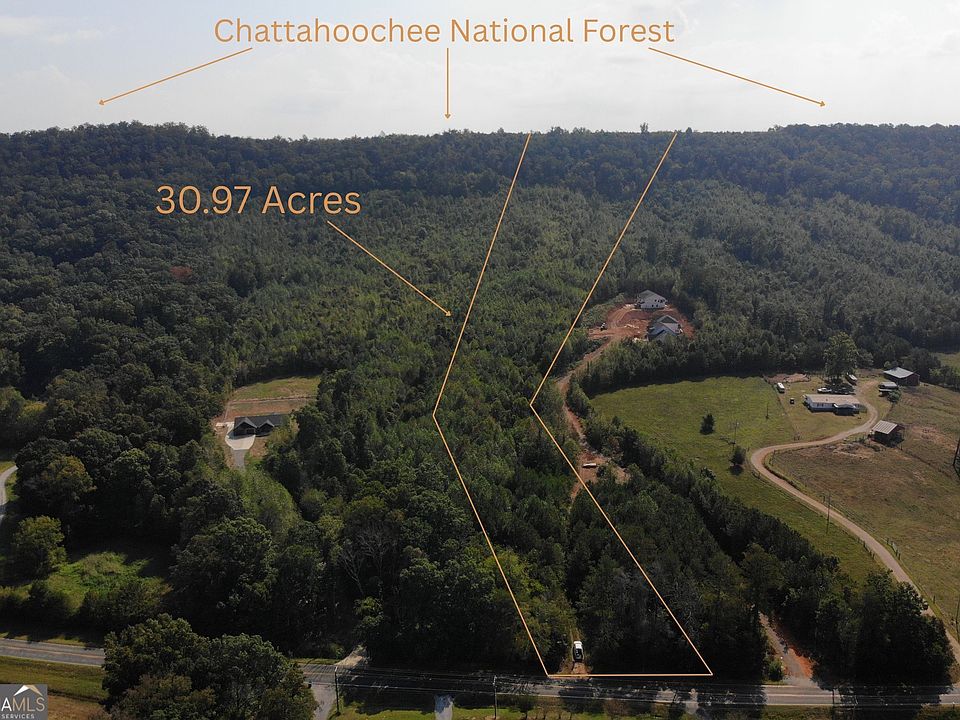 Tract 3 - 30.97 Acres Talk about a hunters dream, this tract borders over 2500 Acres of the Chattahoochee National Forest! Abundance of deer and turkey exist on this tract and the National Forest. Majority of the timber was harvested in recent years. Several mature trees still exist along the road frontage, ridge top, and backside of the property. This tract along with the neighboring tract to the south are scheduled with the US Forestry for a controlled burn. Last update shows it to be performed in 2024. The controlled burn will provide many benefits needed to this tract and is a free service that can be transferred to the buyer. This 30.97 acres also invites you to build a home on side of the ridge and enjoy views of the sunset and farm country that exist in this part of North Georgia. Property was surveyed in Oct 2020.