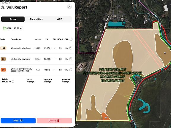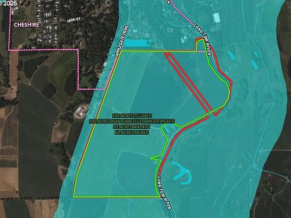 Farm only, no outbuildings. 167 total acres with 156 tillable and 100 acres with non-cancelled 1966 priority water rights from the Long Tom River. The farm is well-suited for various types of crops, particularly grass seed and forage production as well as great livestock grazing opportunities. The versatility can be expanded by drain tiling. With almost one mile of Long Tom River frontage this property provides numerous recreation, fishing and waterfowl hunting opportunities.