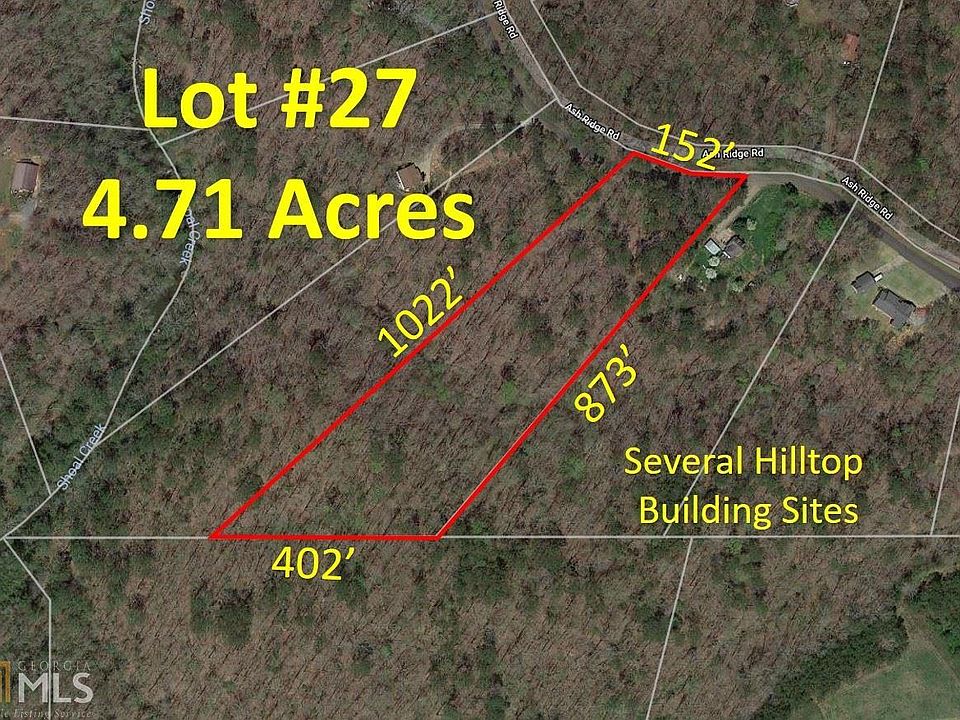 Lot #27 - 4.71 Acres. Beautiful Lot with several building sites. Located in Ash Ridge subdivision (No HOA) - small enclave of large parcels and on a culdesac street. Paved County Roads. Conveniently Located between Canton and Waleska. Close to Lake Arrowhead, Reinhardt University & Callahan Golf Course. Come build your dream home on this private acreage nestled in virtually all hardwoods.