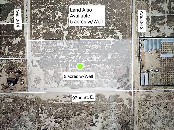 5 ACRES OF FLAT LAND IN THE CITY OF LANCASTER WITH IT'S OWN WATER WELL & PUMP! This is A11 zoning which is now primarily used for Single-Family Residential Development and/or Light Agricultural use. Great Location surrounded by existing homes. Utilities are available such as Power, Water, and Phone and possible Cable and Internet too! Buyer to verify. This vacant land may provide you with many opportunities! INCLUDING TO EXTEND YOUR 5 ACREAGES TO 10 ACRES! YES, THE ADJACENT LAND OF 5 ACRES WITH WATER WELL IS ALSO AVAILABLE TO PURCHASE! ( APN#3306-008-027 ). You could combine both properties to have 10 Acres and 2 Water Wells! Located in a perfect location, 4 properties away from the paved 90th St. and one street over from the paved Avenue E. Don't let this Great Opportunity or Investment pass you by!