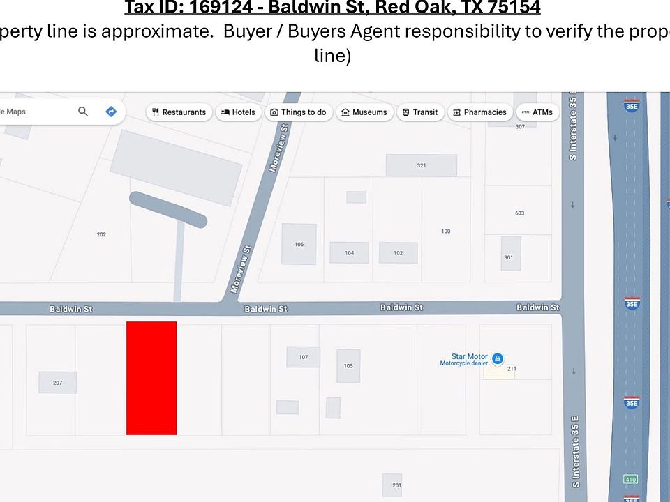 Seize the opportunity to own a prime .254-acre unimproved residential lot in the booming Red Oak, TX. This platted lot, with utilities available at the street, is ready for your custom home or investment project. Situated less than 15 minutes from Dallas and just 400 feet from Interstate 35, this location offers unparalleled convenience for commuters and easy access to the entire DFW metroplex. With no HOA, you have the freedom to design and build according to your vision. Don’t miss out on this rare chance to secure a versatile lot in a rapidly growing community—perfect for those looking to build or invest in Red Oak!