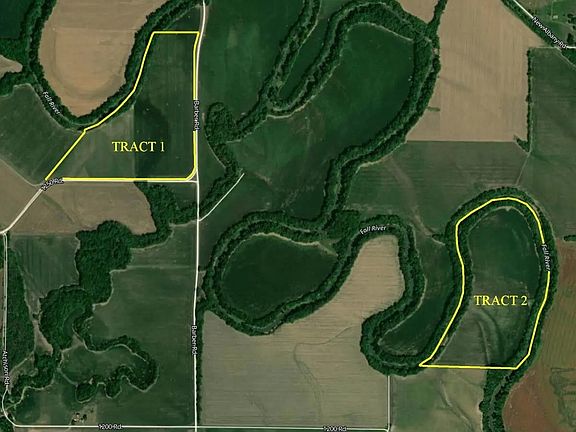 Auction Date: THURSDAY FEBRUARY 8, 2024 4:00 PM * Auction Location: ONLINE ONLY AUCTION! * TRACT 1 of 2 PROPERTY DESCRIPTION: 53+- acres, fertile tillable bottom land, Fall River frontage and trees, south of New Albany in Wilson County, Kansas. 48.72+- acres actual tillable. This high quality farm ground is all Class II soils, and over 92% Verdigris silt loam 0 to 1 percent slope. Township gravel road borders the south and east boundaries, while the center of the Fall River makes up a large portion of the west boundary.