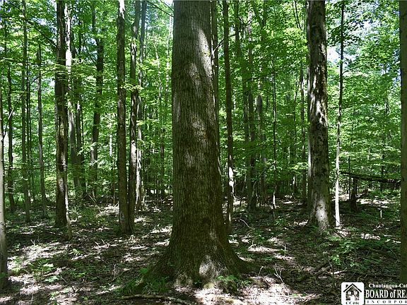 This property is completely wooded with a mix of hard maple, soft maple, cherry, red oak, beech, birch, hemlock and more. There has been no harvesting in a long time and the woods and trails are in great shape. The mix of species is providing mast for deer and turkey and their signs are evident throughout the property. The tract is currently leased for hunting and the lease can be canceled prior to closing if the buyer chooses or can be a source of income if this is an investment property. There is ample room to build your future home or camp here where you will be only minutes from Chautauqua Lake and 5 miles from Bemus Point for all the best summertime activities in the area. There is a public boat launch in Bemus Point for your boating and fishing enjoyment as well as for kayaking or canoeing.