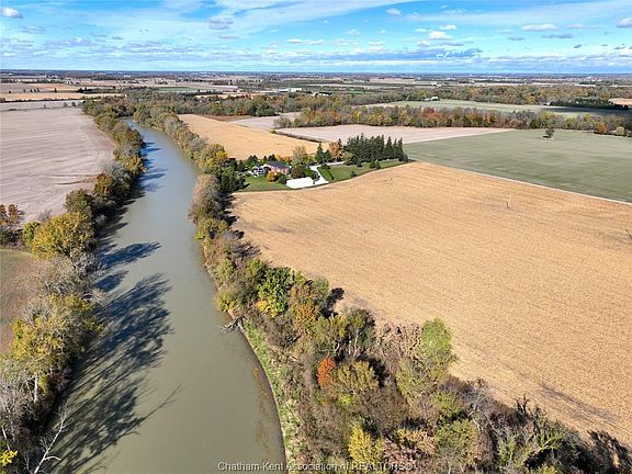 55 +/- acre farm with 46 +/- acres workable of productive soil, ideal for a wide variety of crops, including grains and vegetables; the last tomato crop was harvested in 2020. The land was tiled in 2020 with 40 ft spacing, including strategically placed mains to maximize drainage efficiency. Backing onto the Thames River provides an opportunity for irrigation. Along the River Line between Chatham and Kent Bridge. Tile map and soil analysis available upon request.