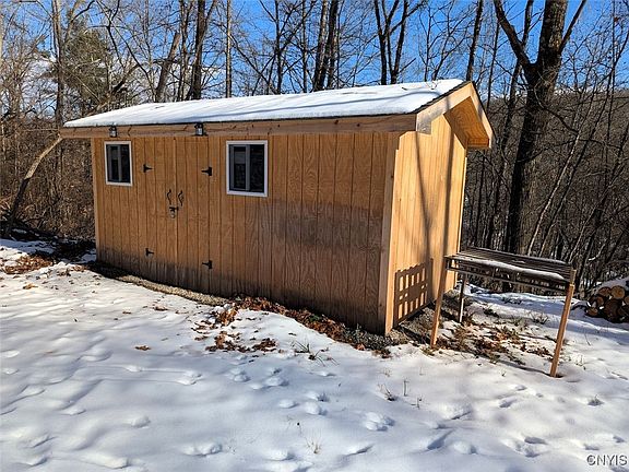 Situated along a quiet paved road, this completely wooded property offers an excellent setting for a camp, cabin, or full-time residence. A newer gravel driveway provides gated access to a level clearing, creating a ready-to-use building site with utilities conveniently located across the street. Additional improvements include a small generator shed and a larger storage shed for keeping you and your gear dry between outdoor adventures.