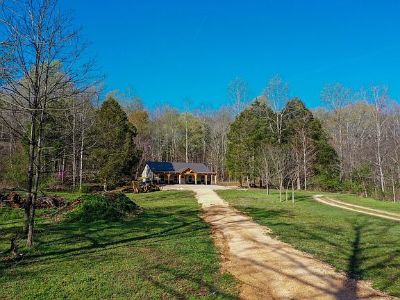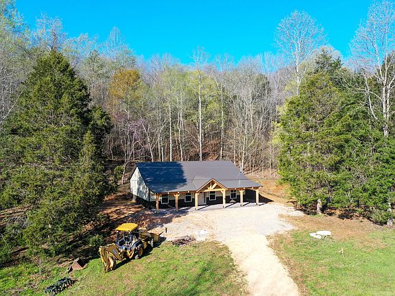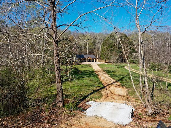 Welcome to your new home on Bell Branch Rd, a new build unfinished home that sits on 5 acres in Nunnelly, TN. The home features 3 bedrooms and 2 full bathrooms totaling 1408 sq ft. Sit back and relax on the large 10x44 timber frame stamped concrete front porch, overlooking the Bell Branch Fork of the Piney River. The house is being sold as is, and is subject to price increase as the build continues. Completed additions include all exterior features, plus wiring, HVAC, and foam insulation inside. Come finish this home yourself or strike a deal for the complete build.