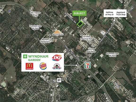 The Hwy 21 market is a dominant industrial corridor. Property is located outside of the Bryan city limits. Public water is available along Boatcallie Rd. Approximately 535’ of frontage along the north side of Boatcallie Rd.