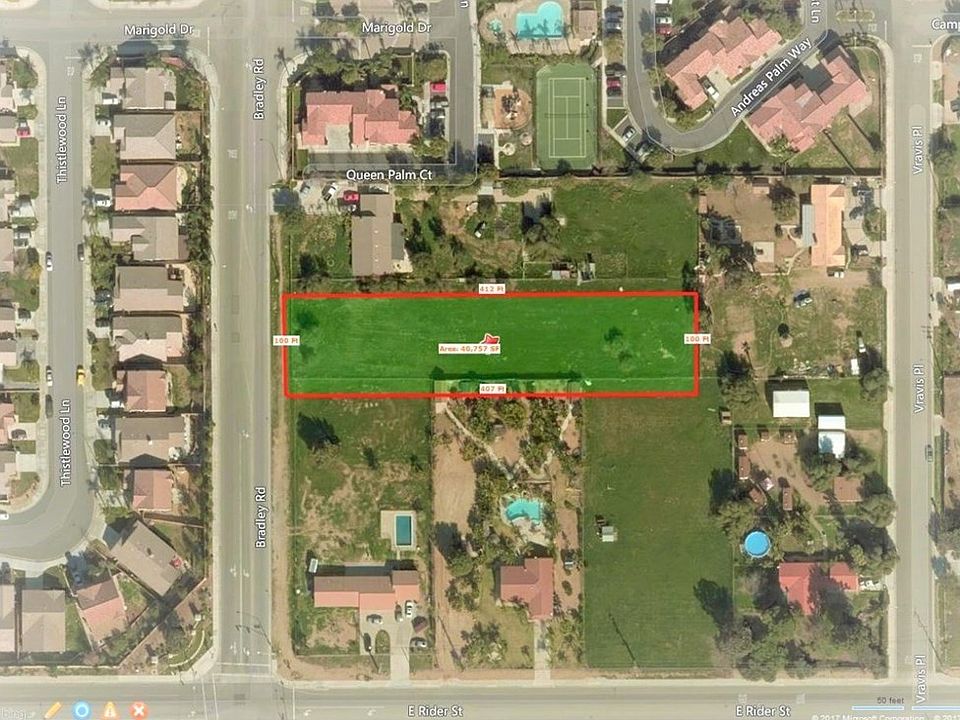 Nearly an Acre of prime flat land with Hills views and surrounded by newer-built lovely single family homes. On Bradley Road directly across the street from KB homes development built in 2002. All utilities available. Build your own dream home with enough land to have a park-like resort-style backyard with pool, plus RV parking space. Or Great Investor/Developer opportunity to build units, zoned MFR-14 which will allow for 7-14 units per acre. It is close proximity to Perris Lake, shopping, restaurants, schools & freeways. Check with the city for more possibilities of use.
