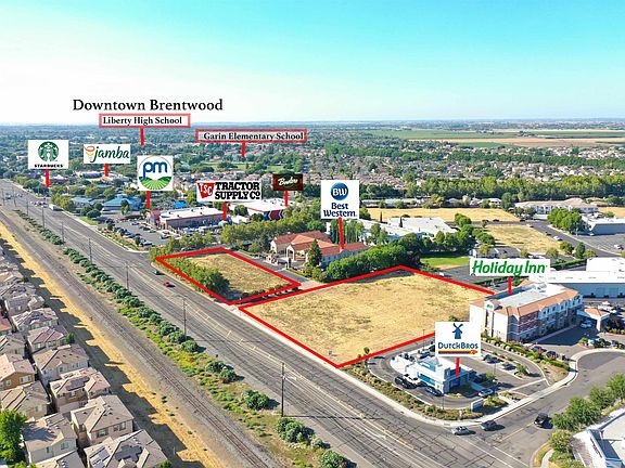 These two adjacent properties present a prime commercial opportunity along South Brentwood Blvd. The first property is a corner lot, just shy of a one acre in size, boasting substantial frontage on South Brentwood Blvd. Adjacent to it is a second site, spanning 1.74 acres, also with frontage on Brentwood Blvd. This location benefits from high visibility along the bustling Highway 4 corridor, positioned directly in front of and next to notable establishments such as Best Western, Tractor Supply, Dutch Brothers Coffee, and the Ace Hardware complex. The strategic placement along this busy thoroughfare underscores the potential for a lucrative commercial development investment
