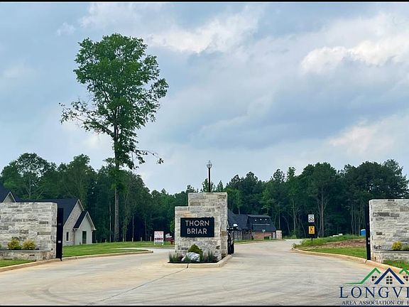 1.286 acre lot in gated Thorn Briar subdivision in sought after Hallsville ISD. The lot is located at the end of a cul-de-sac with many evergreen and hardwood trees. Lot has been cleared for pad and rough grade completed. BYOB (bring your own builder)!
