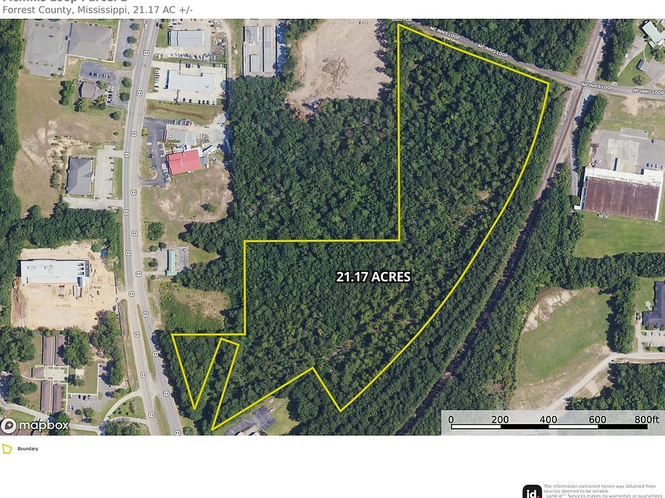 Great, large, commercial parcel with frontage on both Broadway Drive and McInnis Loop. Both streets offer good visibility and high traffic counts. This property also has railroad frontage and quick access to Highway 49, Highway 11, Highway 98 and Interstate 59. It would be a great location for warehouses or a transport hub.