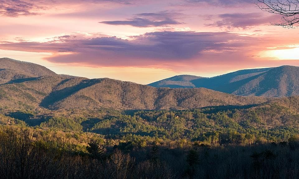 TOP OF MOUNTAIN | 1.5 ACRES | LONG-RANGE VIEWS (with selective clearing). Prime CHERRY LOG/CHERRY LAKE location between Blue Ridge & Ellijay with community water, modest HOA road care, trail/lake access, perc test in progress, and STRs allowed. Quiet, wooded ridge lot at the top of Broken Arrow Path—no road noise, just birdsong and the promise of long-range ridge lines with tree clearing. This parcel is a turnkey basecamp for hiking, lakes, and mountain-town fun, with walking access to the Benton MacKaye Trail (connects to the Appalachian Trail) and community lakes. This is raw land—bring your builder and vision to create a modern cabin, full-time home, or weekend escape wrapped in mature hardwoods and minutes from restaurants, breweries, orchards, Lake Blue Ridge, and the Toccoa River. Note: Sunset photos are from neighboring home with the trees cleared/topped.