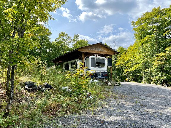 Escape to Nature - 7.1-Acre Country Retreat with Creek, Forest & Open Field. Discover this superb 7.1-acre parcel nestled on a peaceful country road, surrounded by the natural beauty of Northern Ontario. Featuring a diverse landscape of mature mixed forest, quiet lowlands, and nearly 1 acre of open field, this property is a dream come true for nature lovers, outdoor enthusiasts, or those seeking a private getaway. A small creek meanders through the property, adding to the charm and tranquility. Whether you're envisioning a hobby farm, your dream home, or a cozy off-grid cottage, this lot offers multiple ideal building sites with over 1,000 feet of frontage on a quiet, well-maintained road. A 36-foot travel trailer - protected by a built-over roof, provides an immediate space to stay and enjoy the land. A small solar system is included, helping you keep the light on and connected to nature. Located in an unincorporated township - no building permits required, you can start building right away.The area is renowned for some of Ontarios best hunting (deer, moose, and small game) and offers direct access to extensive, groomed snowmobile trails leading to North Bay, Sudbury, Huntsville, and Parry Sound. Explore countless nearby back lakes, for world-class fishing and unforgettable wilderness adventures.