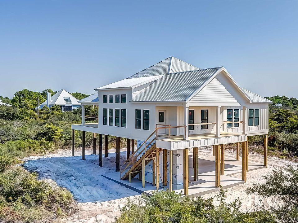 Heated poolGulf breezesEnormous porchesDesigner finishesElevated designOpen floorplanVaulted ceilings