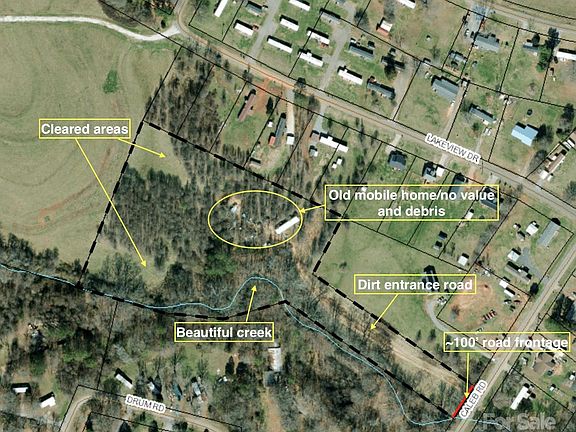 Gently rolling land, partially cleared with peaceful creek just minutes from Shelby and Kings Mountain. Surrounded by residential lots, this land has subdivision potential! Located ~1.5 miles from Pinnacle Classical Academy. Some cleared acreage and some wooded acreage. Old manufactured home and old workshop structure is of NO VALUE. Seller selling AS IS and will not remove the debris or old home. This is an estate sale so seller has limited knowledge. Zoned Residential in Cleveland County. County water available. No septic permit found.