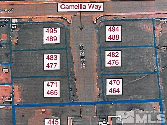 Six finished lots on Camellia Way, in Lovelock, NV 89419. Three lots are 8100+- SF (0.186 acres) each and three lots are 8015+- SF (0.184 acres) each, totaling 1.11+- acres as a whole. The lots are zoned multi family residential, a zoning which allows a variety of development options including single family dwellings, duplexes/triplexes/fourplexes, and apartments. Water, sewer, and natural gas are already stubbed out to the lots. Electric/phone <50 feet. Curb and gutter. APN's 001-241-14/15/16/17/18/19., SIX READY-TO-BUILD MULTI-FAMILY LOTS Six finished lots on Camellia Way, in Lovelock, NV 89419. Three lots are 8100+- SF (0.186 acres) each and three lots are 8015+- SF (0.184 acres) each, totaling 1.11+- acres as a whole. The lots are zoned multi family residential, a zoning which allows a variety of development options including single family dwellings, duplexes/triplexes/fourplexes, and apartments. Street is adjacent to single family residences on the west side and apartments on the south side. Pershing General Hospital, Lovelock's outpatient medical clinic, and the Lovelock Community Center are all located on 6th Street, a very short distance from the property. Area employment centers are within a short stroll. Water, sewer, and natural gas are already stubbed out to the lots, and underground phone is present along the front of the lots on the west side of the street. An underground electric transformer is located a few feet south of the property, and an NV Energy project is open to allow quick and easy power distribution to the lots should Buyer wish. Curb and gutter are existing along the street in front of lots. Low building costs thanks to all these preexisting improvements. Addresses have been assigned by the City based on an assumption duplexes will be built on the lots, resulting in street numbering of 495/489 (001-241-14), 483/477 (001-241-15), 471/465 (001-241-16), 494/488 (001-241-17), 482/476 (001-241-18), and 470/464 (001-241-19) Camellia Way. APN's 001-241-14/15/16/17/18/19. GPS 40.176289, -118.483617 What3Words ///ambition.coached.attract Additional nearby lots available. Directions: I-80 exit 106, go west on Main St, left on Dartmouth Ave, right on 6th St, and left on Camellia Way. The lots are lined up along both sides of the street, stretching from 6th Street in the north to the apartments fence line in the south. Please note Google Maps does not map Camellia Way correctly, so if you are using Google Maps type the GPS coordinates into the search box as "40.176289, -118.483617" and the map will load correctly.