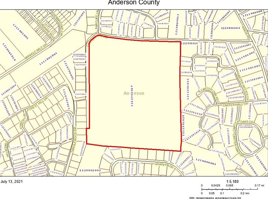 59.09 wooded acres. So much development potential for this great site inside the city limits. Just off of North Main Street. Close to the Mall, Anderson University, ANMED Health Campus, East West Connector and numerous boat ramps on Lake Hartwell. Zoned Concord/McCants and TLH Schools. 2911 road footage on Canterbury Rd. Land is currently taxed Agricultural. Zoned R-20. Buyer would be responsible for any rollback taxes. Power, sewer water and gas available at road.