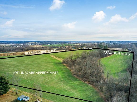 Absolutely stunning piece of property, excellent for residential development. First time offered, just off Frazeysburg Road (SR 60) in Nashport. This site offers strong development potential including ample frontage from Carnation Road, public utility availability, flexibility in layout and a convenient location just outside of Zanesville, yet only a few minutes from schools. Topography is slightly rolling with current use being agricultural. Property is restricted for single family use, single family development, or agricultural use. Potential sketches of layouts are available under attachments.