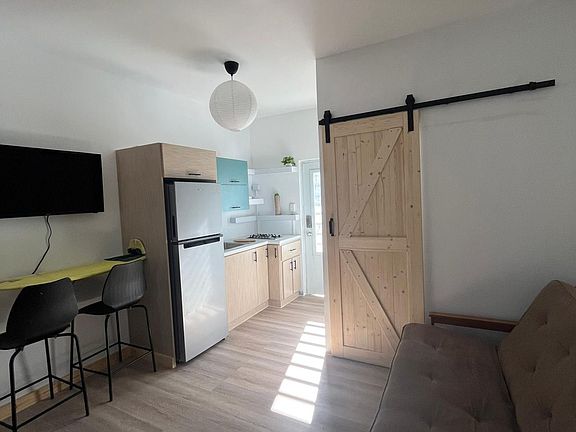 Elegant and comfortable furnished studio apartment with air conditioning. Located 5 minutes from Jobos Beach and 15 minutes from BQN Airport. Close to Honeywell, Pratts, and HP. Private, secure, fenced area with parking. Includes water, electricity, and Wi-Fi. Furnished with a queen-size bed, sofa bed, one nightstands, refrigerator, stove, dresser, closet, TV, and washing machine. A security deposit is required. We reserve the right to refuse admission. Certain restrictions apply. Lic. C-23251 Enid Elegante y comodo apartamento/estudio, amueblado, con aire acondicionado. Localizado a 5 minutos de playa Jobos, 15 minutos del Aeropuerto BQN. Cerca de Honeywell, Pratts and HP. Area privada, segura, cercada y con estacionamiento. incluye agua, luz y WIFI. Amueblado con, cama queen, sofa cama, una mesa de noche, nevera, estufa, gavetero, armario, tv, lavadora. Se requiere fianza. Nos reservamos el derecho de admision. Ciertas restricciones aplican. Lic. C-23251 Enid No Smoking allowed. Utilities are included, restrictions apply.