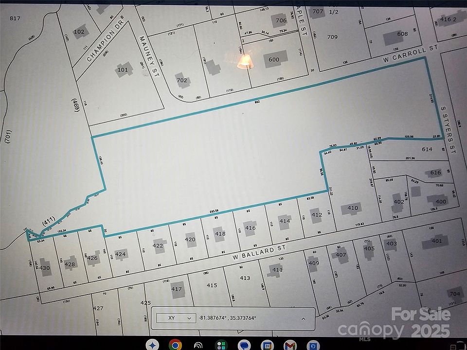 Five acres available in the city of Cherryville. Zoned R-9 residential with city water available at the street. The city sewer is not available at this time. The city has agreed to bring the sewer in at Maple Street, but will not construct the line until the property is developed. The sewer will be available at Maple Street and will require a pump system. If the developer chooses to divide this property, they will be responsible for continuing the sewer and installing pump systems on the lots. The property has over 880 feet of road frontage. This is a corner lot starting at Carroll and Styers.