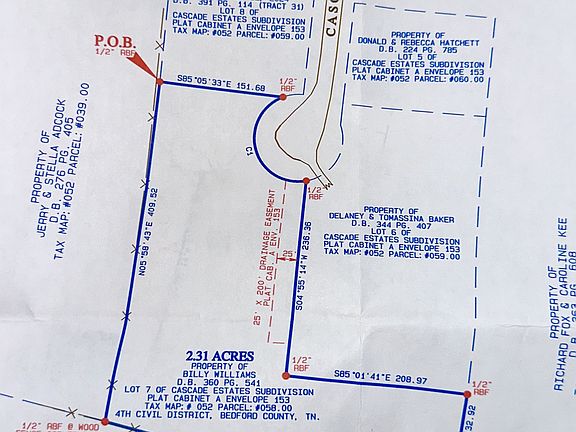 Check out this wooded building tract with new survey. Water tap installed and approved with health department for septic. Cascade Lane was previously named Champion Lane.