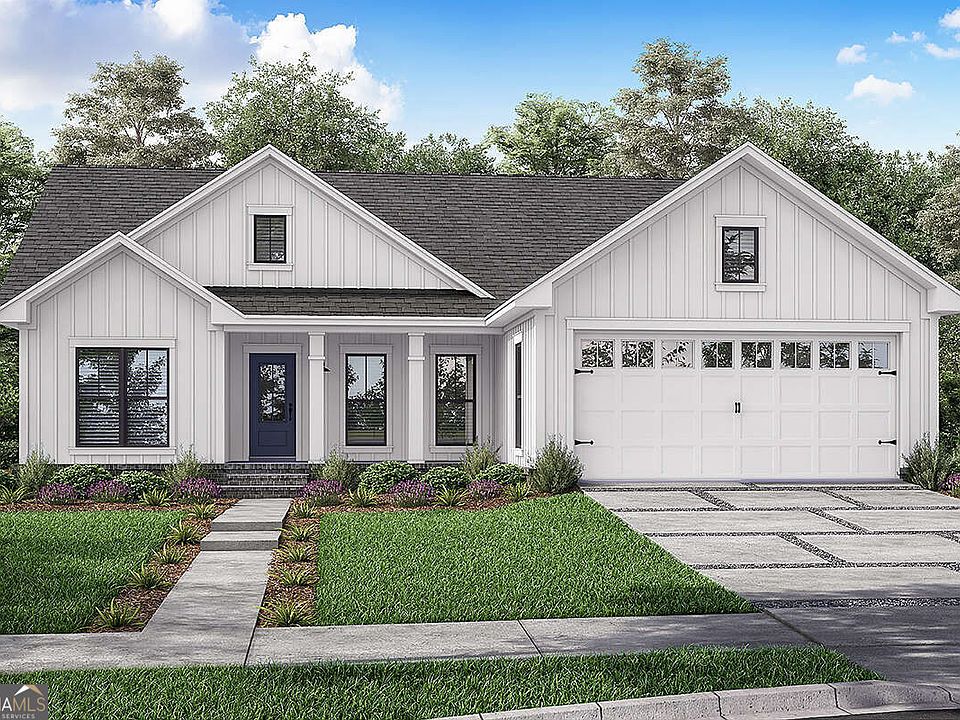 This single story, step-less modern farmhouse is in the process of being built. You can still select the finishes for your dream home, being built on an expansive 1.2 acre lot in the heart of Douglasville. No HOA gives you freedom and flexibility. Quiet and convenient location; proximity to Hwy 91, Hwy 5, & five min to downtown Douglasville! A classic covered front porch with traditional farmhouse elements offer warm curb appeal. Step into a 10ft high great room that flows seamlessly into the open-concept kitchen and dining space. The kitchen features a generous center island with an eating bar, a double sink overlooking the rear porch, a walk-in pantry, and direct access to outdoor living- perfect for entertaining. The primary suite is thoughfully separated from the guest bedrooms and includes 10-ft tray ceilings, a spacious walk-in closet, and an ensuite bathroom with dual vanities, linen storage, and a shower. Meanwhile, the secondary bedrooms are similarly sized and share a well-appointed hall bath with ample closet space. Keep your home organized with thoughtful organizational spaces like the mud room near the garage, and the laundry room. Builder is Trailside Equities- specializing in boutique, high quality builds with client focused service. At this time, a buyer is still able to select their preferred finishes to customize their home. Please call the builder with questions- 208-477-4975. *Renderings give a feel for the space, but are not representative of actual finishes.