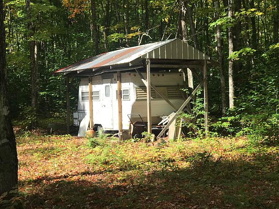 This property is 20 acres of northern hardwood. Road is gated but unlocked. Cleared area suitable for several campers or building site for cabin or hunting camp. Great area known for deer, bear, & moose. There is an RV carport that is presently over a camper, but camper is in poor condition and needs to be hauled away. Outhouse on property appears to be clean and usable. This wont last long.