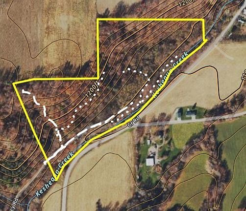 26.3 acres of mature forest with over 1,600 ft. along Keshequa Creek in Portage NY, Livingston County.