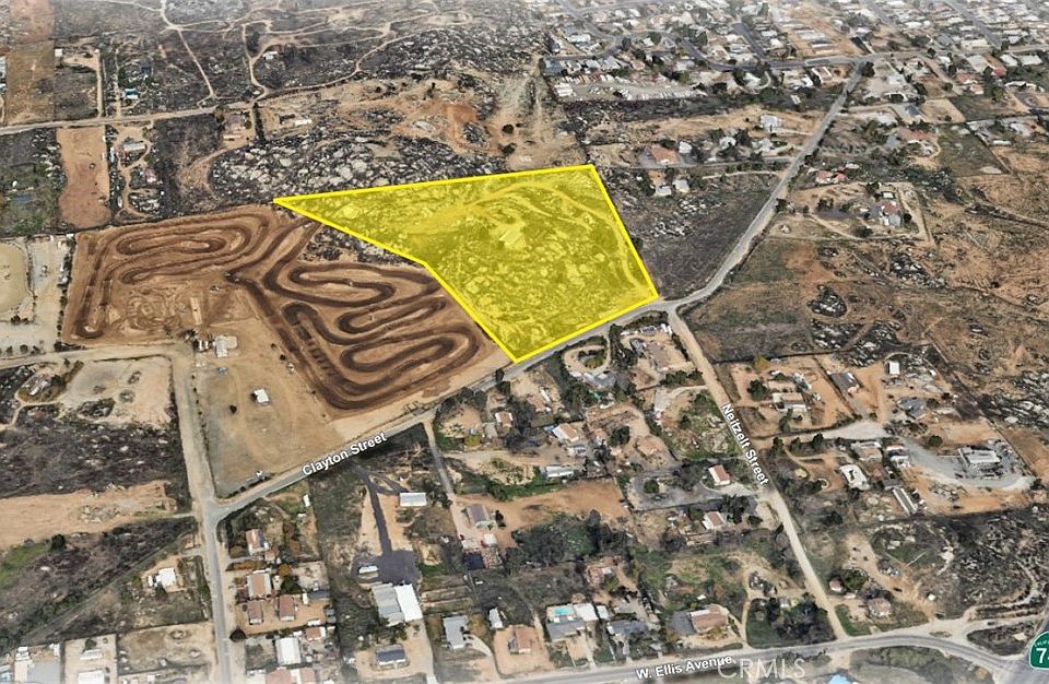 The offering consists of two legal parcel totaling approximately 12.85 acres of land located on Clayton Street within the City of Perris. The property has +/- 500 feet of frontage on Clayton Street, access to public water per the Eastern Municipal Water District, and is located directly adjacent to the Perris Raceway. Additionally, the property is less than a half-mile from Hwy 74 and about two miles from the I-215. The site has an existing mobile home on a permanent structure that was completely renovated and includes a new roof, plumbing, drywall, and interior/ exterior improvements. The property is currently generating $3,500/month in rental income.