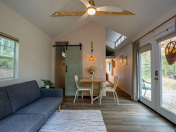 A turnkey 12’x32’ spray-foam-insulated cabin is already in place — fully furnished, solar-equipped, and equipped with rainwater collection and a deck for relaxing evenings under the stars. It comfortably sleeps six, making it ideal for family trips or potential Airbnb guests.