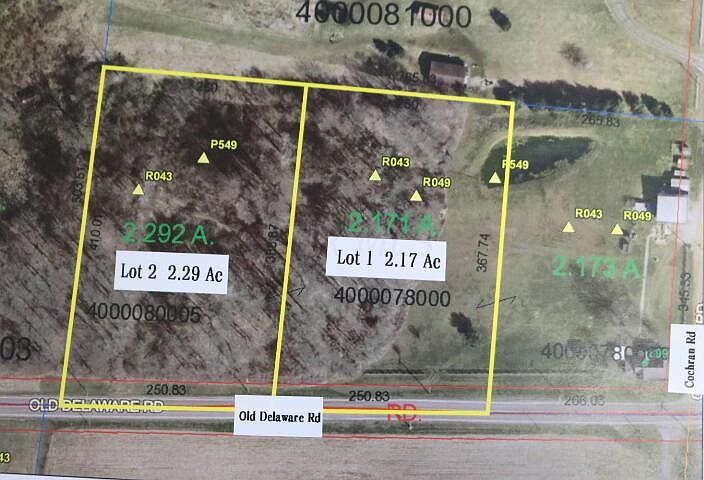2.292 Acre lot (Marked as Lot 2 in photos) with 250' of frontage as required by the Liberty Township. Partially wooded and would make a wonderful building lot. Close to I-71 and the Columbus area. Gentle slope could be excellent for a home with a walk-out basement. Act fast and an adjoining parcel is also listed separately, buy both and gain an additional 2.17 Acres (a total of 4.46 acres)