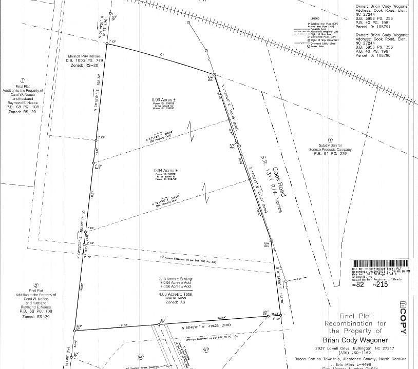 Townhome Development Opportunity! 4.03 acres conveniently located near Elon University, prime retail corridors, and major highways. The property is zoned RM-8 allowing up to 32 townhome units. Sewer Easement recorded to provide access south of the property (~175' from existing manhole to southern property line). Other utilities on-site. 20' Access Easement reflected on recorded plats has been terminated. Topographic Survey (4/30/2020) available upon request.