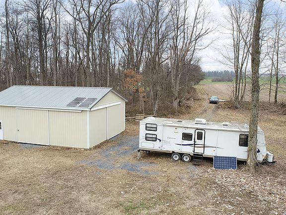 120 Acre hunting sanctuary adjacent to farmland, borders stocked trout stream, multiple food plots, 6’ tower hunting blind, easy access trails throughout property, 30’x40’ pole building for equipment storage, 32’ camper. Land sits fairly flat with easy road access. Property has public water and sewer available.