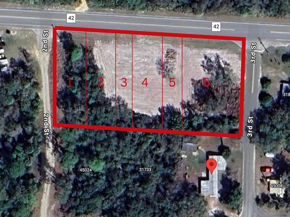 6 CLEARED ROAD FRONTAGE LOTS ON SR42 WITH 300 FEET OF FRONTAGE TOTALING JUST UNDER 1 ACRE. THESE LOTS CAN BE KEPT RESIDENTIAL OR CHANGED ZONING FOR COMMERCIAL. SELLER MOTIVATED BRING ALL OFFERS! This listing is associated with listing 45009 3rd St, DeLand. This listing is for the sale of all front lots on 42, which can be converted into commercial lots. 6 buildable lots are available for sale together, allowing for subdivision for additional opportunities. Please refer to the private remarks for more details. PLEASE CLEAR ALL INFO WITH COUNTY